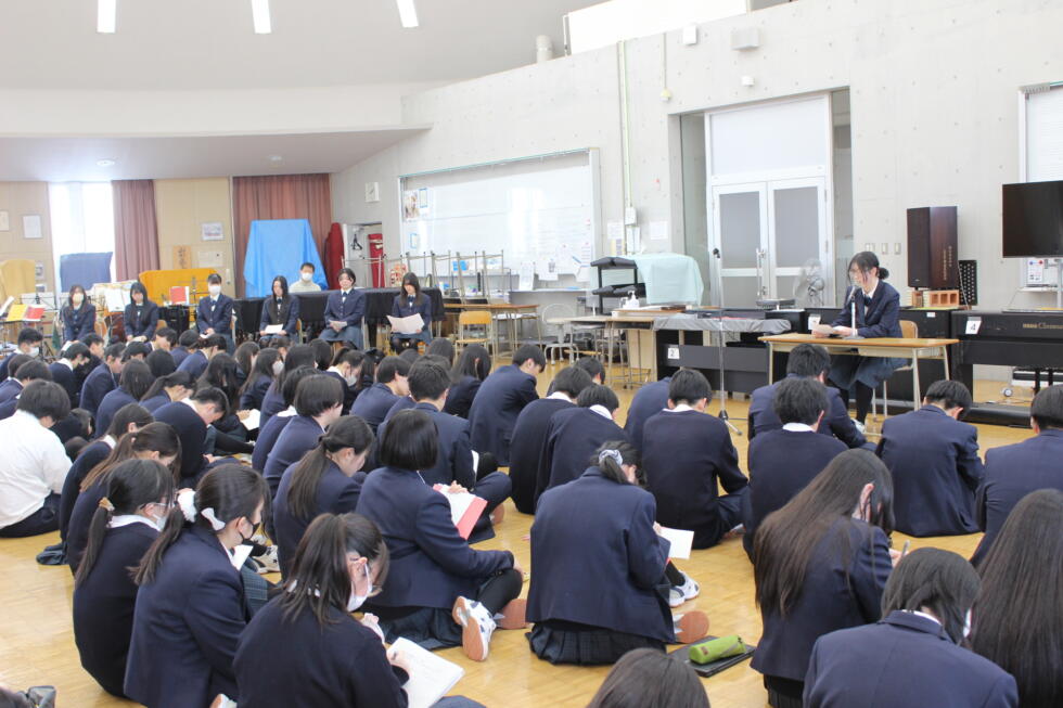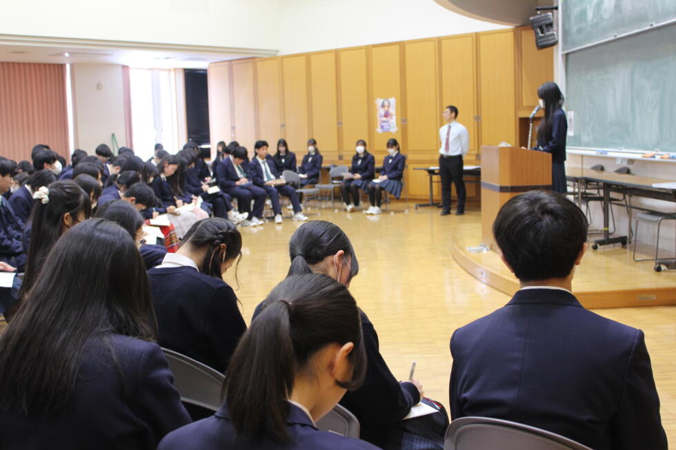 2月4日(水)3年次生の登校日です。これに合わせて1・2年次生対象の進路ガイダンスが行われました。進路の決まった3年次生から直接体験談を進路別に話していただきました。これから本格的に進路活動の始まる2年次生、これから進路を絞って考えるであろう1年次生にとって貴重な経験となったことと思います。話をしていただいた3年次生に感謝します。